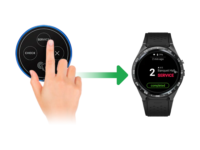 Eliminate customer neglect and frustration by giving guests the ability to easily and discreetly call their server without leaving their table. With the push of a button, a signal is sent to the server's wristband, letting him or her know that their table needs a refill, a check, or service. Reduce irritating hovering and never lose business from an abandoned customer agin by giving your servers a simple way to remain available to each table throughout their vist.