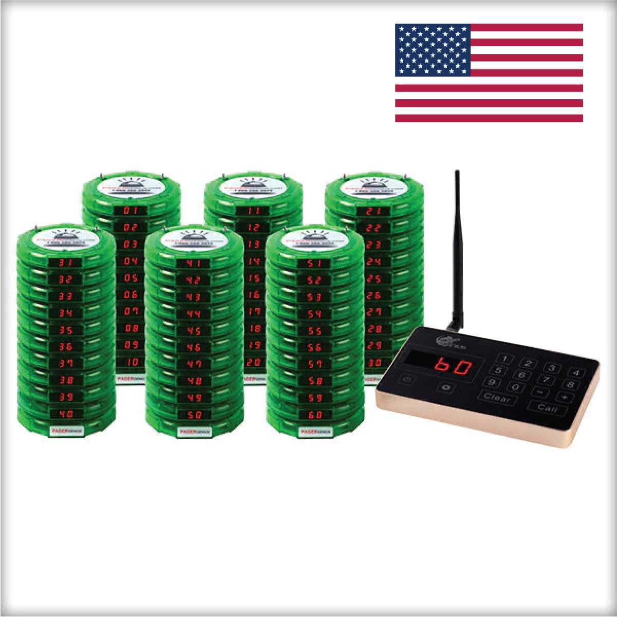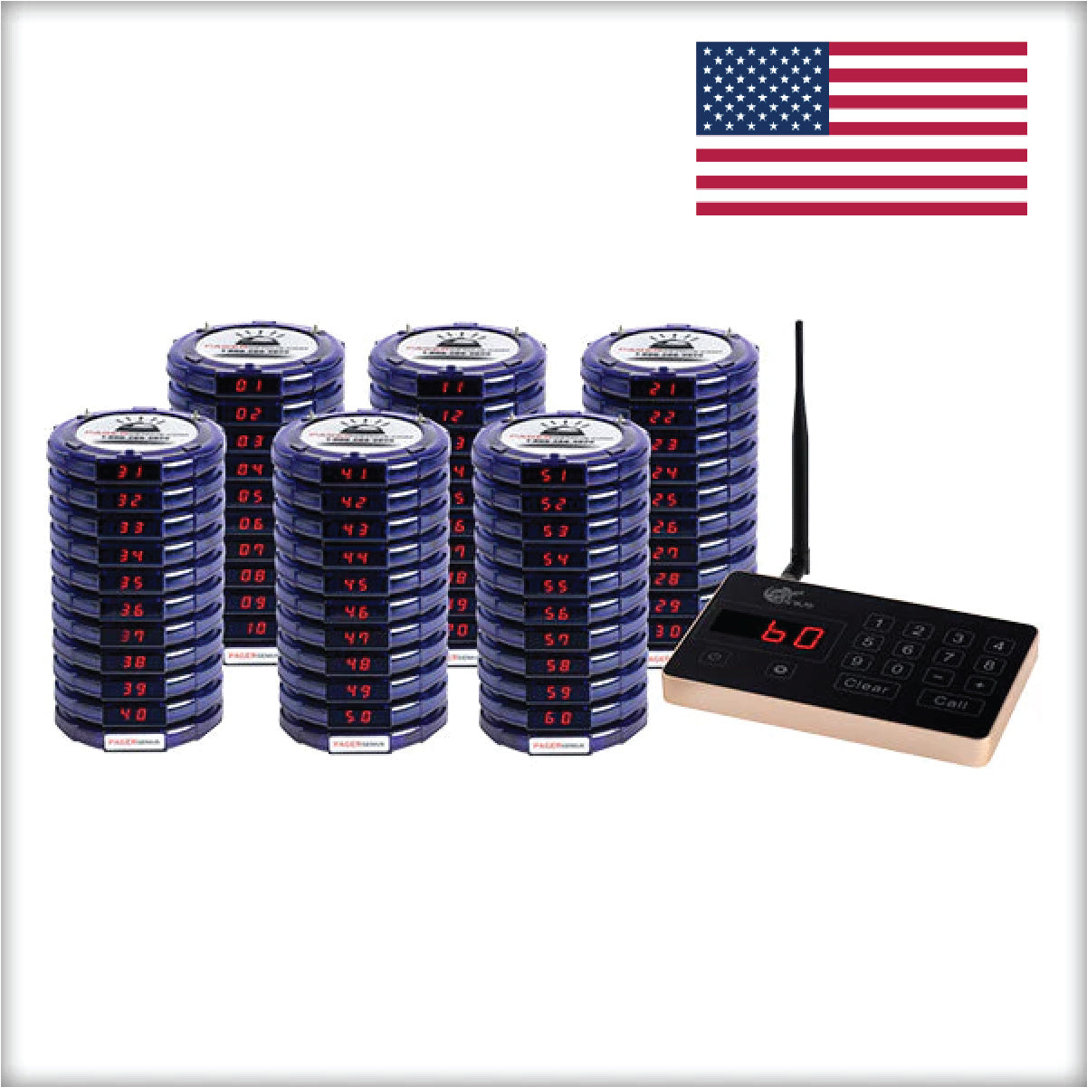 - What's Included: Pagers, Charging Bases, and Transmitter